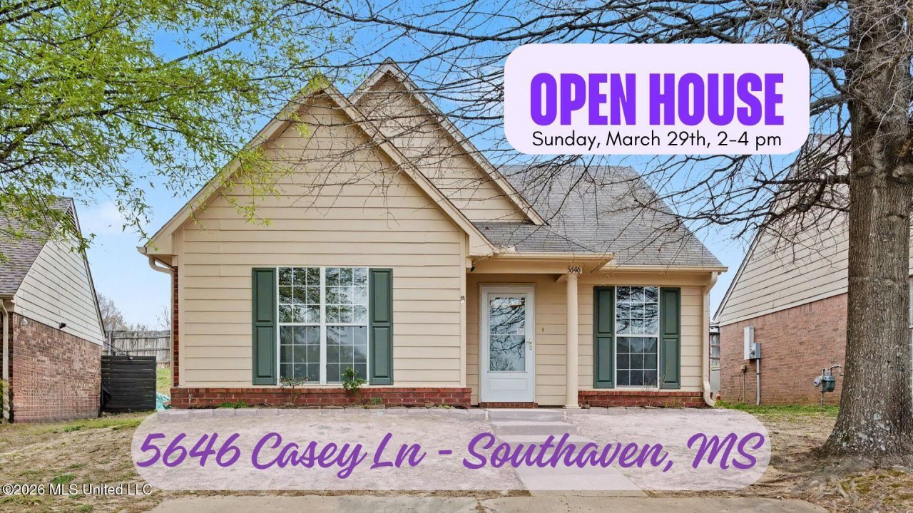 ** OPEN HOUSE - Sun. March 29th from 2-4 PM ** Move-in ready 2 bedroom, 2 bath home in Southaven near I-55 and Northwest Mississippi Community College featuring fresh paint, new LVP flooring, new stainless appliances, washer and dryer, and a fenced backyard with pergola patio.Inside, the spacious great room offers vaulted ceilings and abundant natural light, creating an open and inviting feel that flows into the kitchen and breakfast room. The kitchen features a breakfast bar, separate dining area, two pantries, and a dedicated laundry closet with washer and dryer included.The one-level, well-designed split bedroom floor plan offers generously sized bedrooms, including a primary suite with private bath and walk-in closet. The second bedroom also features a walk-in closet. Step outside to enjoy the fenced backyard with a pergola-covered patio that is perfect for relaxing, entertaining, or outdoor dining. An additional exterior storage room provides space for tools, seasonal items, and extra storage needs.Conveniently located near I-55, Northwest Mississippi Community College, Tanger Outlets, Baptist DeSoto, shopping, dining, and everyday conveniences, 5646 Casey Lane is ready to welcome you home!